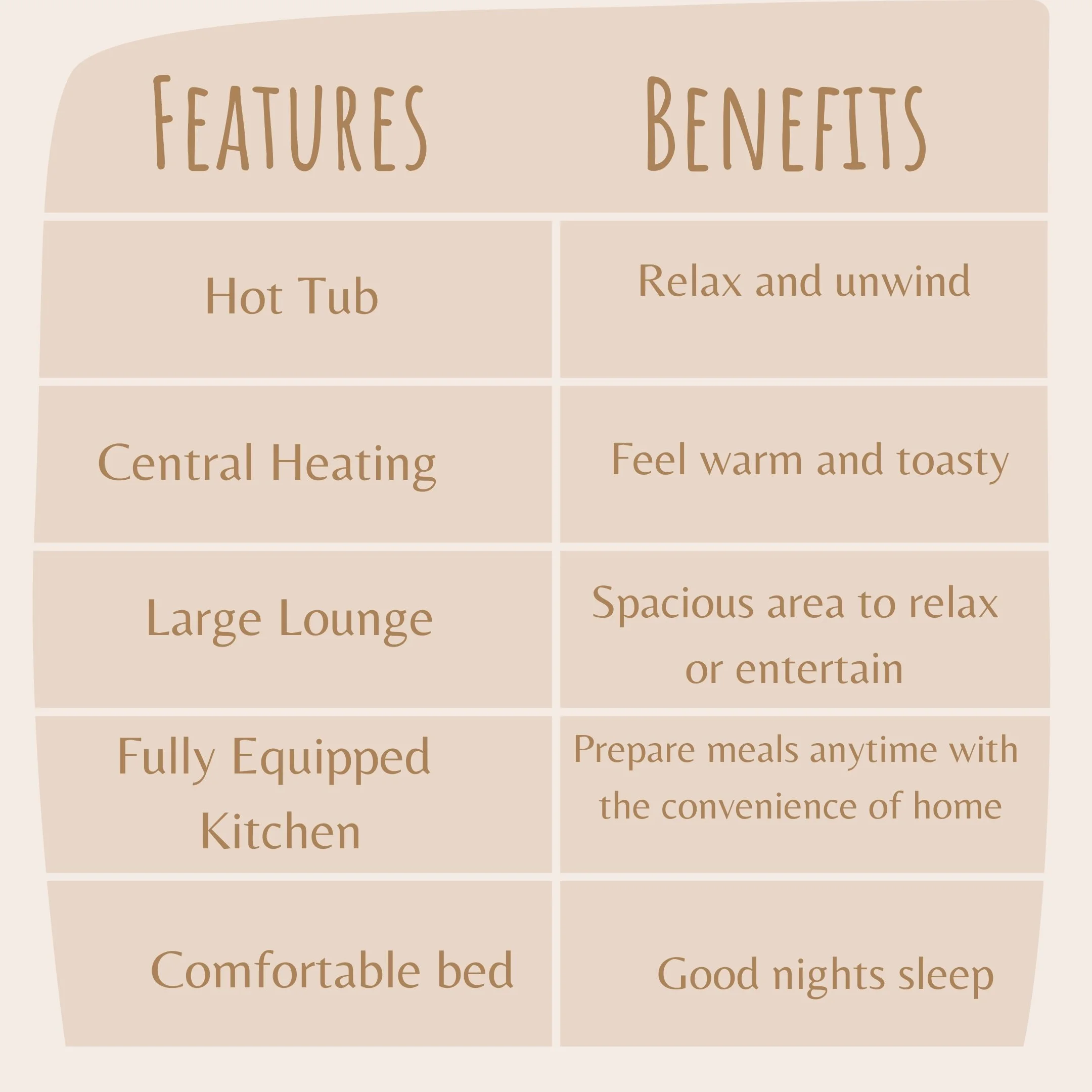 Talking about the benefits allows your potential guests to imagine enjoying themselves at your property.